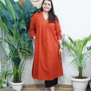 Meet your new “wear-everywhere” favorite. This Rust A-line Kurta is the perfect blend of effortless comfort and understated chic, designed for the modern Sona Mart woman who values both style and practicality.