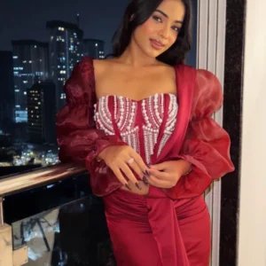 Simply slip it on with our suggested  Burgundy Hand Embroidered Corset and your favorite gold jewelry for an opulent cocktail, Diwali party, or wedding look! This ready-to-wear saree is perfect for any occasion that demands a chic and sophisticated entrance without the hassle of traditional draping.