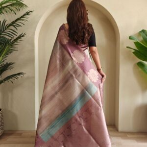 Introducing Sona Mart’s exquisite Premium Printed Silk Weaving Saree, a stunning blend of tradition and contemporary design. This luxurious saree features a beautiful silver zari motif design pattern meticulously woven across its body, adding a touch of timeless elegance. The saree’s body is a captivating combo of multi-colored digital print and intricate weaving, creating a unique visual texture that’s both vibrant and sophisticated. Enhancing its charm is a beautiful weaving flower pattern in the border, framing the saree with delicate artistry. The saree is completed with a rich contrast pallu, ensuring you make a grand statement at any event.