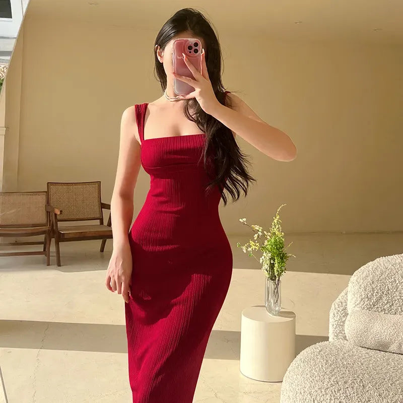 Make a powerful entrance in our Red Square Neck Strapped Maxi Dress, designed for the woman who loves bold, confident style. Crafted from a high-quality, opaque polyester, this fitted dress offers a sleek silhouette that gracefully hugs your curves. Its elegant square neckline with slender straps and a floor-length drape ensures a sophisticated and stunning look, perfect for any evening occasion, solid red color is vibrant and eye-catching, ensuring all eyes are on you.