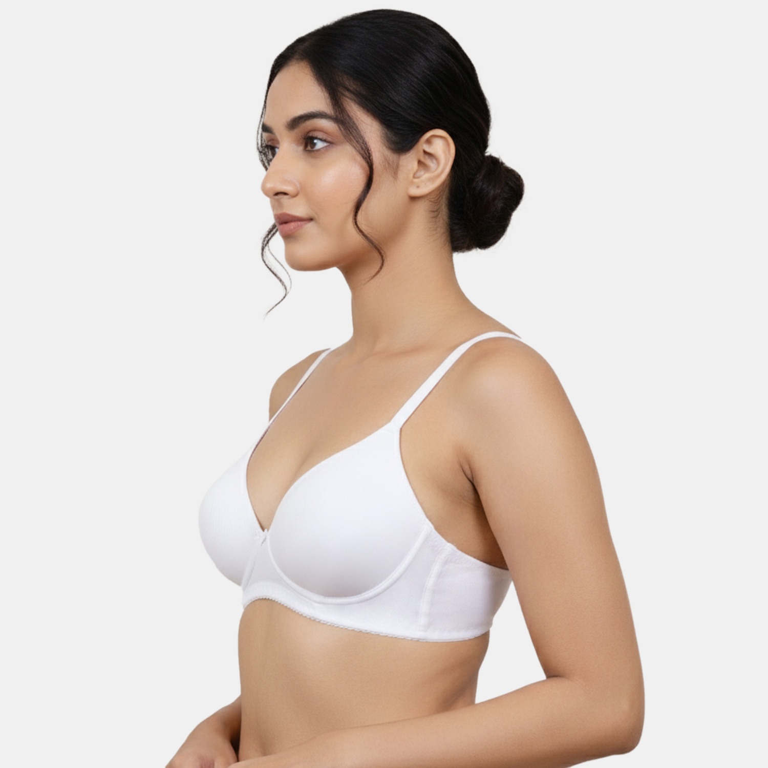 The softly moulded padded cups provide a gentle lift and a naturally rounded shape, while the non-wired construction ensures you stay pressure-free and comfortable from morning to night. Crafted from a breathable Cotton-Spandex blend, it moves with you, making it the perfect “invisible” partner for t-shirts, tops, and kurtis.